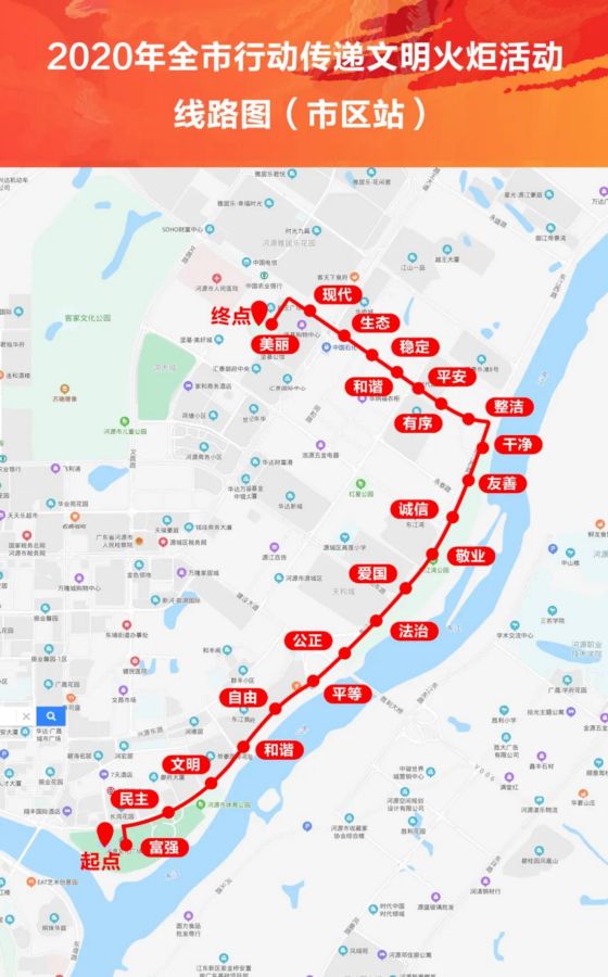 2020年全市行動(dòng)傳遞文明火炬活動(dòng)8月2日市區(qū)站線路圖。